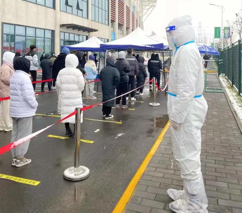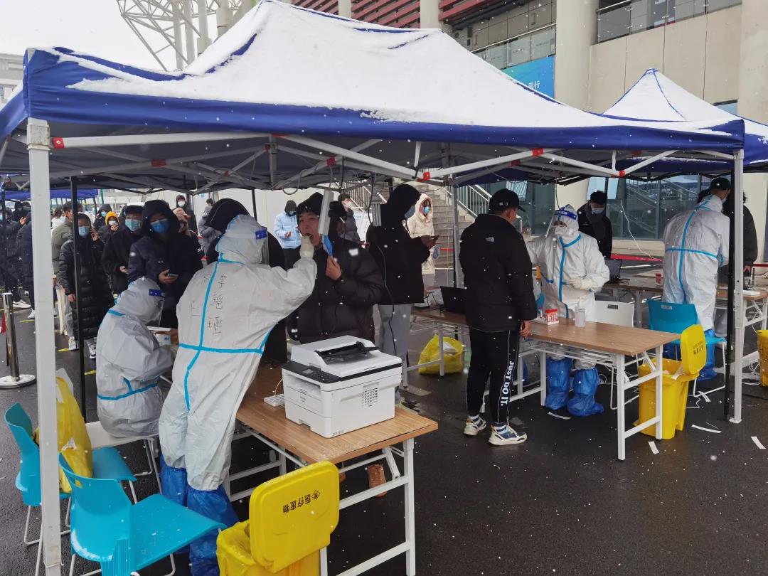 在校区师生、医护人员以及青年志愿者的共同配合下,新一轮全员核酸检测有条不紊地进行。