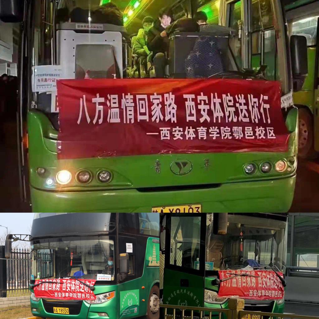 1月19日起,鄠邑校区安排车辆“点对点”护送校区学生到“一场四站”返乡乘车。