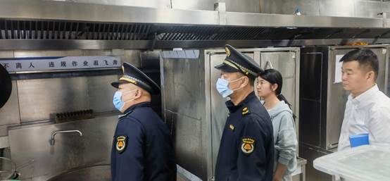 10月9日,碑林区城管来我校对学生餐厅油烟治理工作开展督导检查。