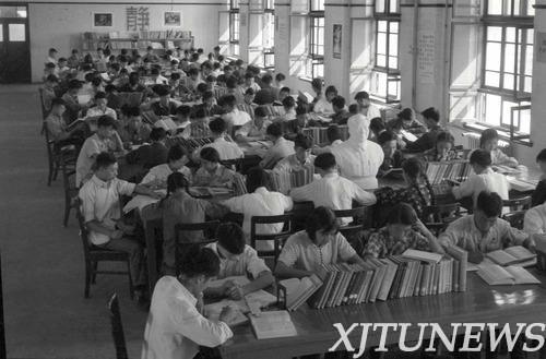 1959年,同学们在图书馆阅览室
