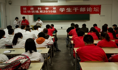 3月14日晚,由健康科学系与运动训练系2010级联合举办的学生干部论坛在教学楼209教室拉开帷幕,两系相关教师和五十余名学生干部参加了本次论坛。