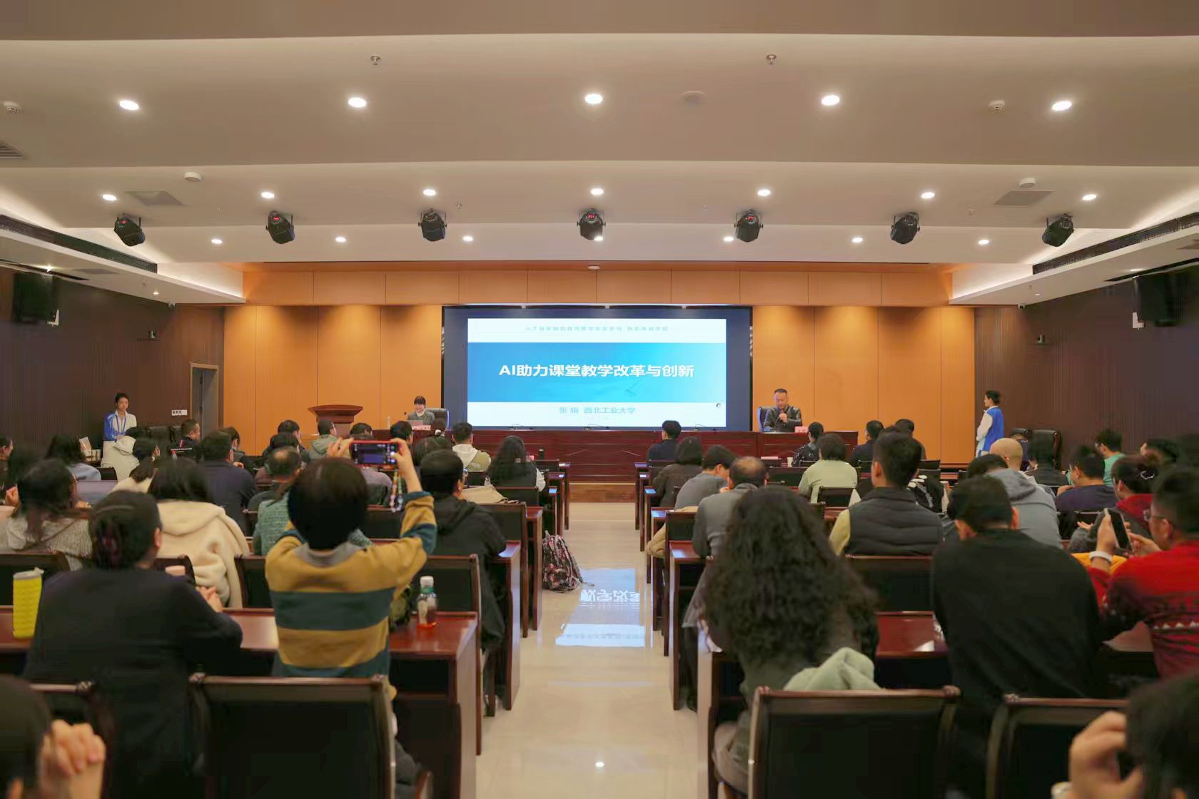 本网讯    进一步弘扬教育家精神,持续推动师德建设与课堂教学深度融合,助力教育教学改革创新,11月6日,我校在鄠邑校区举办2025年第九场师德师风报告会,邀请西北工业大学力学与交通运载工程学院张娟教授作题为《AI助力课堂教学改革与创新》的专题报告。各学院党政负责人、教师及辅导员代表到会学习。