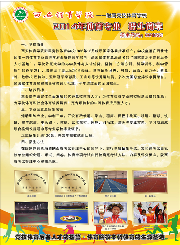 西安体育学院竞技运动学院 西安市碑林区含光北路65号 邮编:710068 联系电话:029-88409750