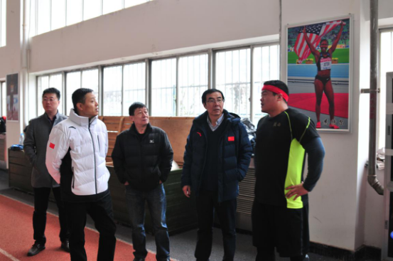 本网讯 2017年1月19日,党委副书记朱元利在竞校领导班子的陪同下看望了寒假期间正在备战的竞校各训练队。朱书记在看望大家的同时要求竞校做好冬训期间的训练工作和后勤保障工作,全力以赴做好备战工作,并向春节期间不能回家过年的教练员和队员表示了慰问。