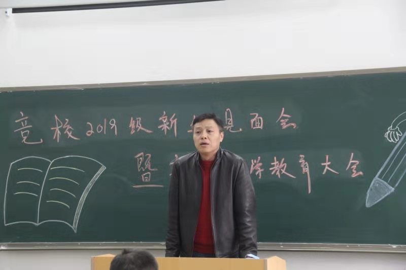 本网讯 11月20日,我校2019级新生见面会暨新生入学教育大会在竞校二楼中一教室召开。本次见面会由辅导员周帅阁主持,出席本次见面会的有校长张文军、书记樊康、副校长纪伟、行政党支部书记党康等校领导、全体教师及新疆内派教师高老师、行政干部及2019级全体中专和预科新生。