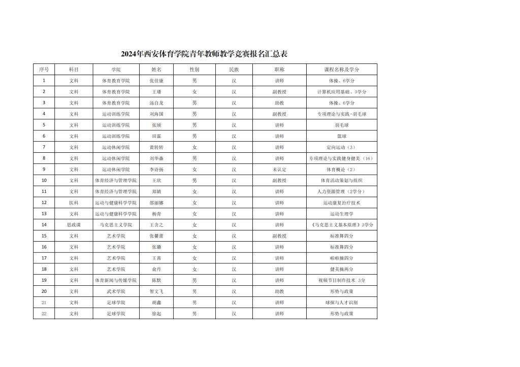关于2024年西安体育学院青年教师教学竞赛校赛参赛人员的公示