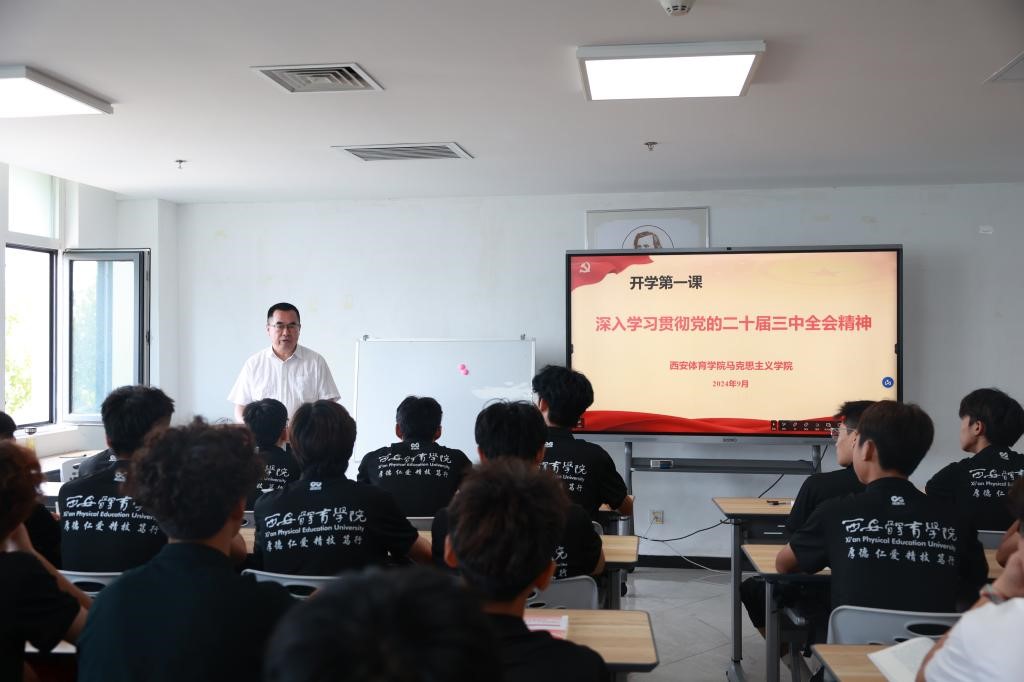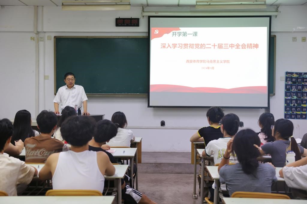 党委书记刘子实为体育新闻与传媒学院学生讲授了深入学习贯彻党的二十届三中全会精神的思政课,从党的二十届三中全会的重大意义、精神实质、核心要义和实践要求,对党的二十届三中全会精神进行了系统阐释,并结合国内国际鲜活事例和学校发展实际讲授了如何贯彻党的二十届三中全会精神,推进教育科技人才体制机制一体改革,提升办学质量,同时教育引导学生坚定理想信念、锐意进取、开拓创新,为中国式现代化建设贡献青春力量.