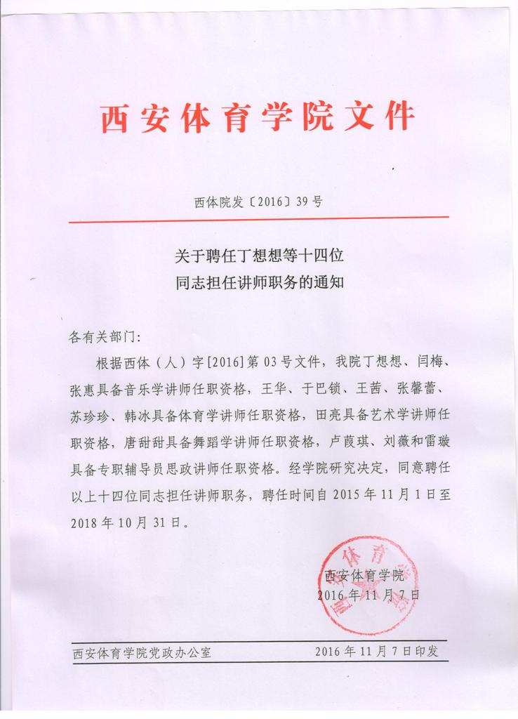 关于聘任丁想想等十四位同志担任讲师职务的通知