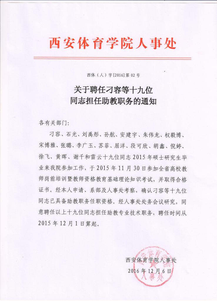 关于聘任张佳康、杨茜两位同志担任助教职务的通知