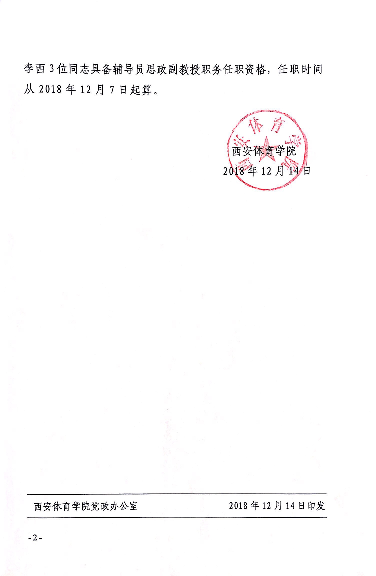 西安体育学院临近退休高聘在岗专任教师...