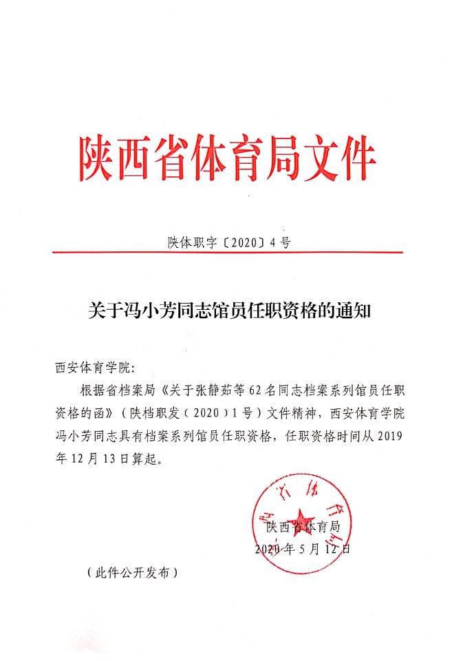 关于冯小芳同志馆员任职资格的通知