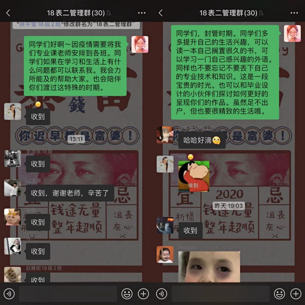 在群里给学生们予以鼓励,然后也分享了自己的电话微信,希望学生们有困难能及时联系我,然后也和同学们私下进行沟通,交流,积极关注他们的心里状态和变化。