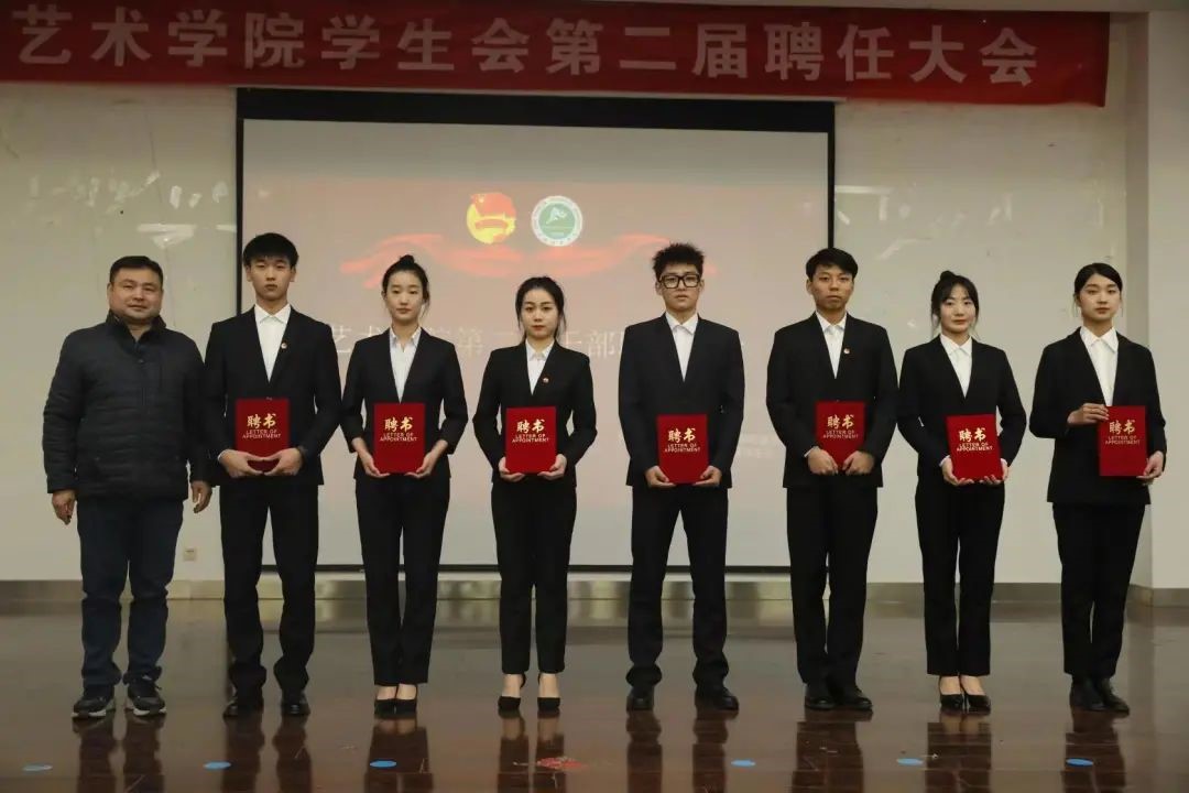 2021年11月24日中午,艺术学院学生会第二届干部聘任大会于教学楼五楼报告厅举行。