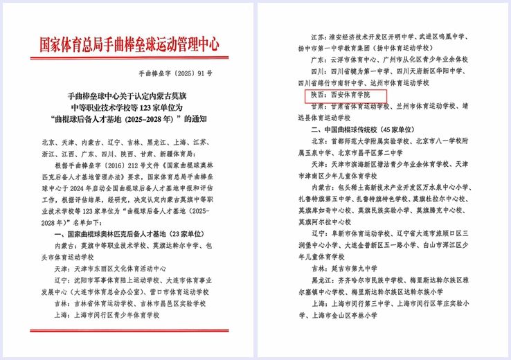 本网讯 近日,我校被国家体育总局手曲棒垒球运动管理中心认定为“国家曲棍球奥林匹克后备人才基地(2025-2028年)”。国家体育后备人才基地以奥运为周期,每4年评定一次。此次获批不仅是对我校国内一流的场地设施的肯定,也是对学校落实“5+3+1+X”竞训项目布局、探索手曲棒垒橄项目特色办学思路的认可,将对我校提升曲棍球运动水平、培养更多优秀曲棍球人才、推动曲棍球项目发展提供有力支持。