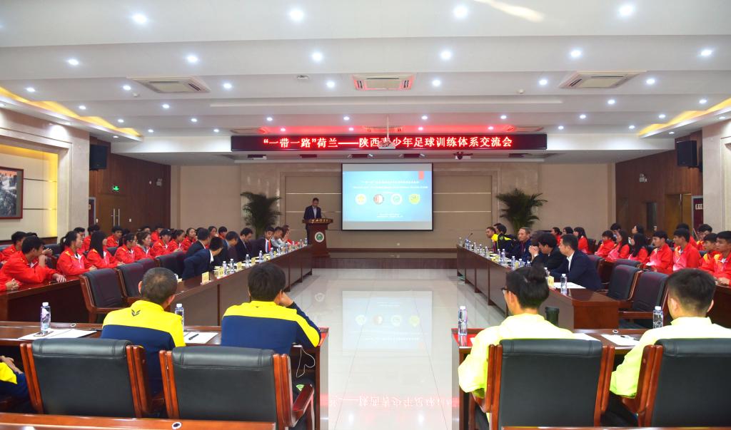 10月27日,由足球学院组织的“一带一路”荷兰—陕西青少年足球训练体系交流会暨足球专业实践活动在我院新网球馆会议室举行。西安体育学院副院长文立新、足球学院朱军、陕西省足球管理中心副主任马冰泉、足球教研室主任席海龙、副主任马俊,荷兰鹿特丹费耶诺德足球俱乐部国际事务总监吉多•韦德、青训教练彼得•巴伦兹、青训教练迈克•奥比库、荷兰王国驻重庆总领事馆胡玺喆以及陕西省足球管理中心、陕西浪潮足球俱乐部相关负责人参加会议,会议由朱军主持。