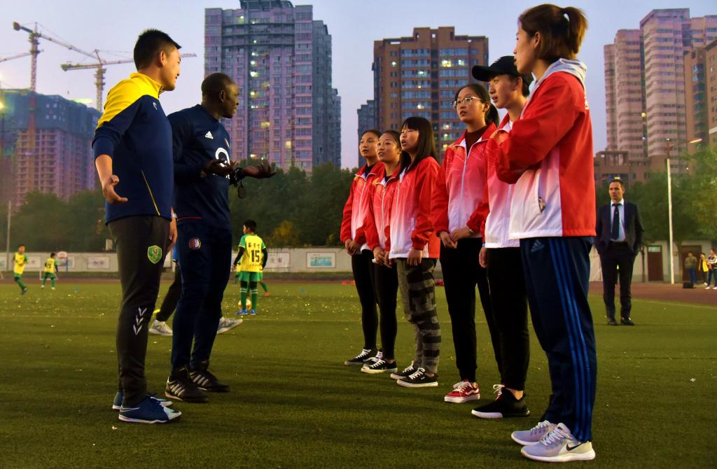 (荷兰鹿特丹费耶诺德足球俱乐部足球教练向足球学院学生授课)