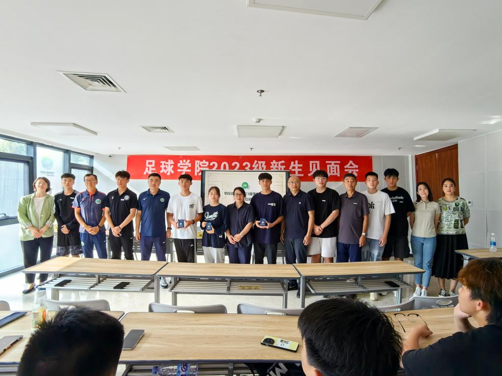 院长席海龙借用西安交通大学校长王树国在西安交大2023级本科生开学典礼上的讲话中提到的大学生活要完成“夯实知识基础、提升创新能力、培养坚韧不拔的毅力”三项任务,同我院人才培养目标相结合进行解读,鼓励新生坚持足球梦想,把家国情怀融入到不懈奋斗之中。