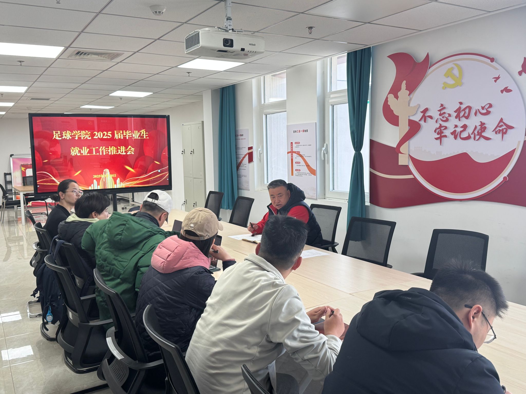 为积极应对当前就业形势,落实学校春季促就业攻坚行动部署会议的相关要求,进一步推进我院2025届本科毕业生就业工作,帮助毕业生顺利就业、高质量就业,促进我院就业工作迈上一个新台阶,足球学院于2025年3月20日上午11时在鄠邑校区棒球馆205会议室召开2025届毕业生就业工作推进会,学院党政班子成员、科级干部、全体辅导员、教研室专项课教师参加会议,会议由学院党总支书记吕学宏主持。