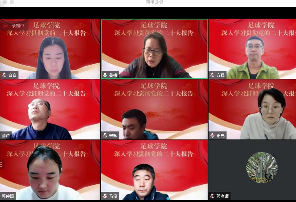为深入学习贯彻党的二十大精神,11月2日下午,足球学院党总支理论学习中心组通过腾讯会议在线上进行了集体学习,会议由党总支书记姜梅主持。