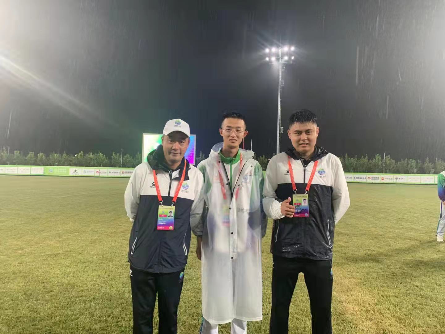 右一为足球学院辅导员田森(棒球竞委会)